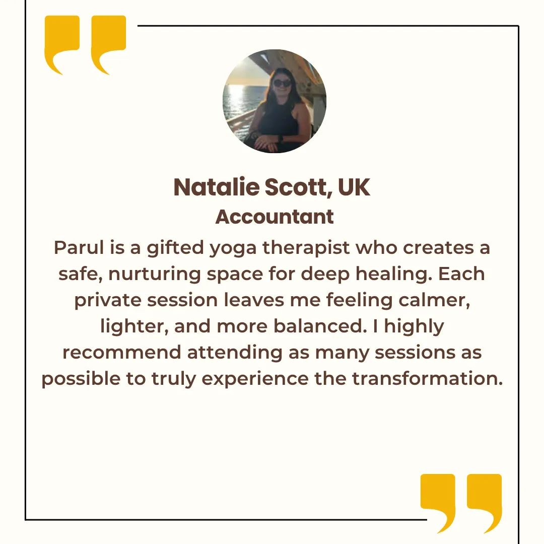 I am an internationally certified Yoga Therapist (C-IAYT) with over 1,800 hours of professional training in yoga therapy, mindfulness, and holistic healing.